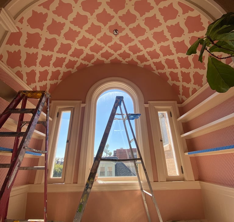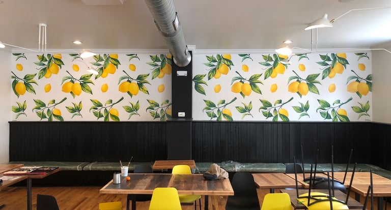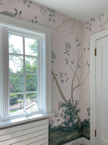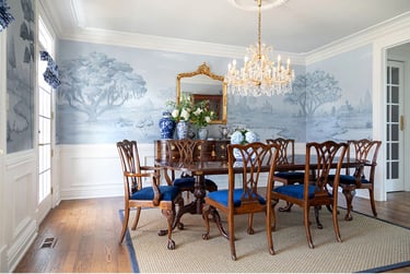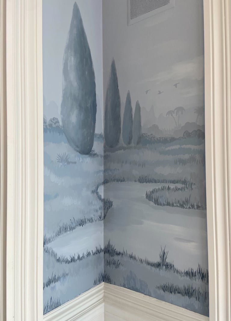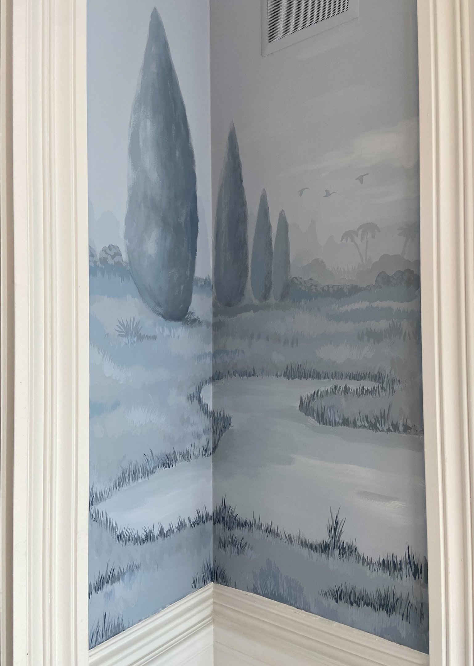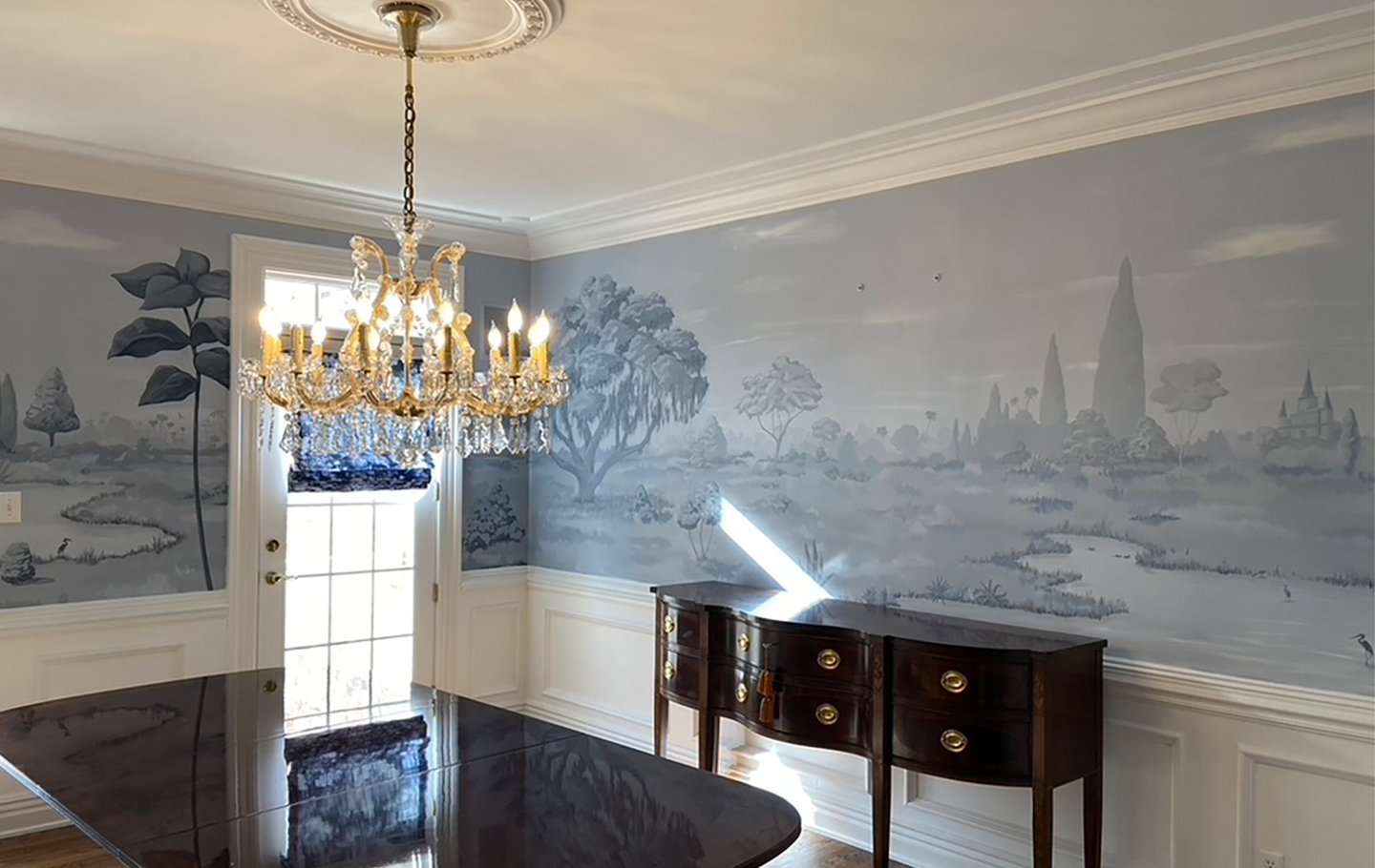 This dining room mural was inspired by the home owners' desire to reminisce about their time in Louisiana and their favorite places in New Orleans.